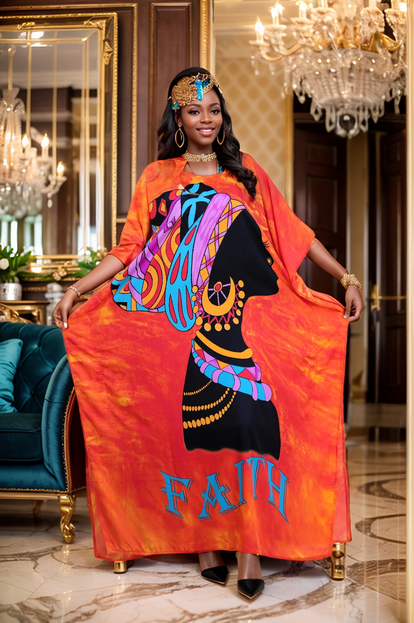 Women's Plus Size African Print "FAITH" Kaftan Dress - Red
