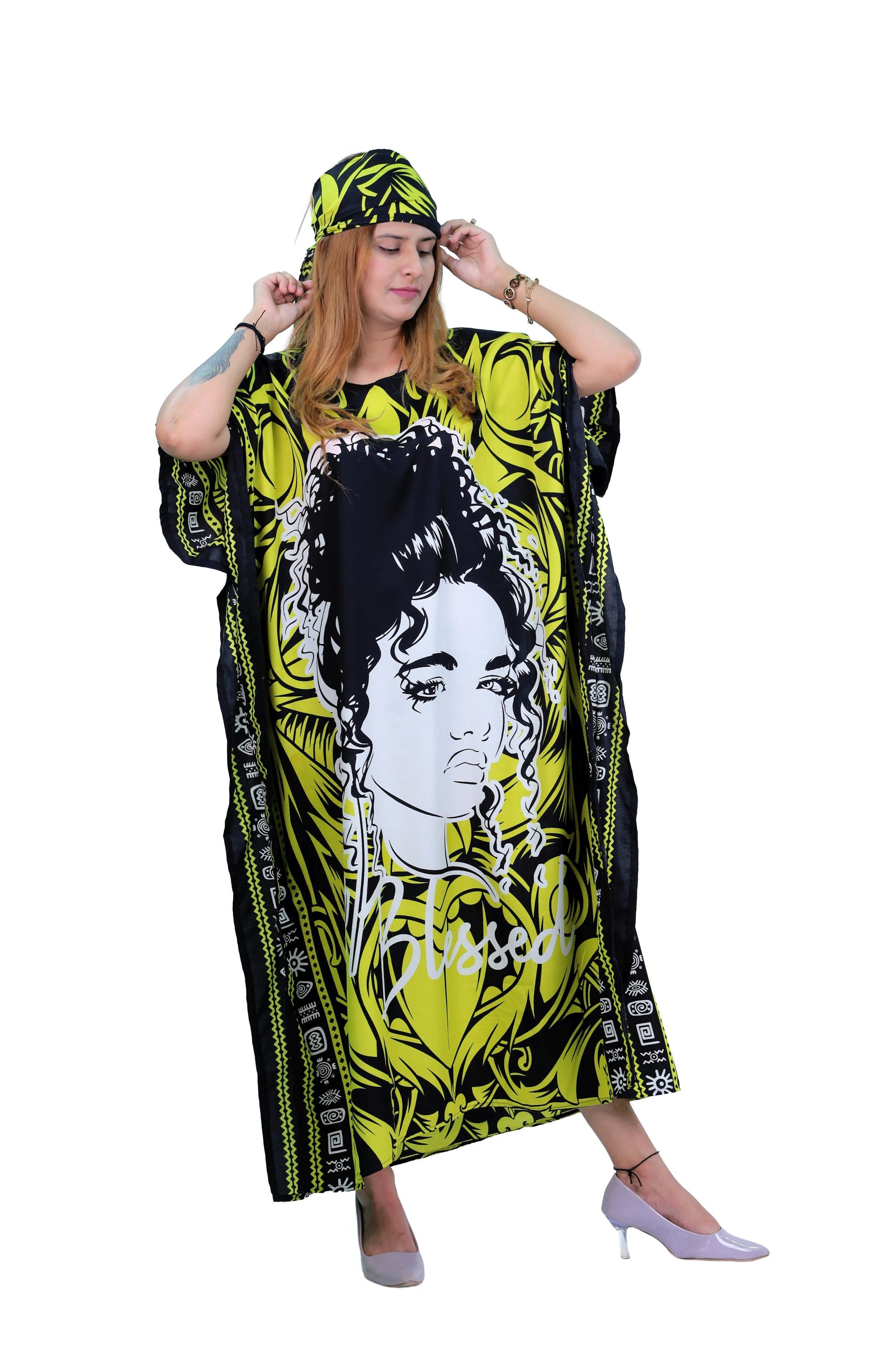 Women's Plus Size Verbiage "Blessed" Caftan Dress - Yellow